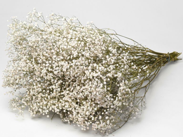 Dried gypsophila is especially popular because it retains its shape and color for a long time without any maintenance. It is lightweight, durable, and ideal for dried bouquets, wreaths, and interior styling. Its fine texture and soft appearance make it a versatile element that adds natural warmth and charm to any space.