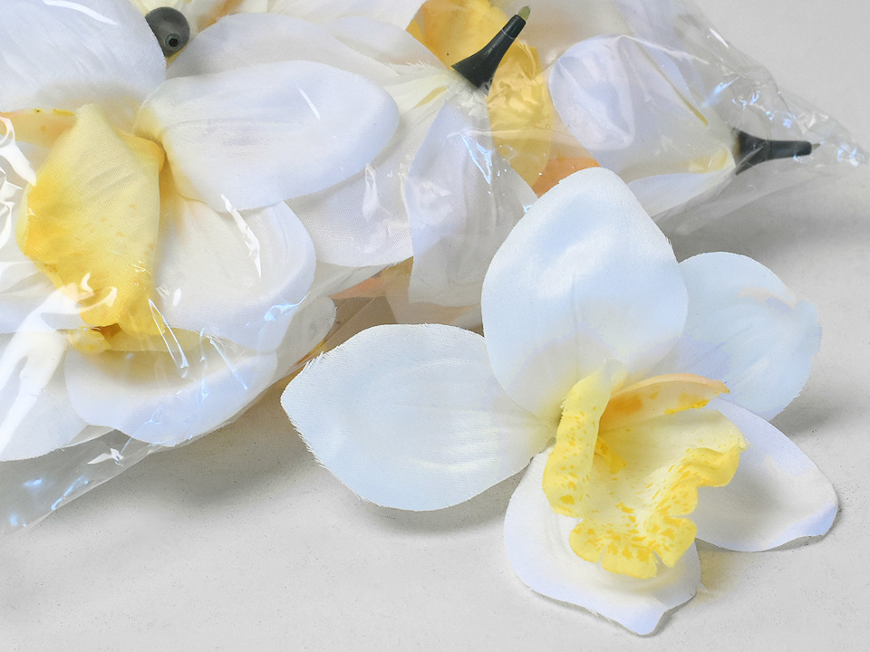 Onze orchideeënkoppen lijken net echt door de mooie tekeningen op het blad. De orchideeën zijn in verschillende kleuren verkrijgbaar en hebben een diameter van 14 cm.